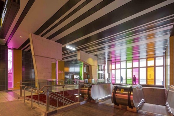 西菲奇站面积11200平方米,投资1.3亿加元,由威廉-艾尔索普的长期合作者布鲁斯-麦克莱恩(Bruce McLean)提供综合的艺术。他希望每一个可见的公共空间融合艺术与建筑之间的界限。