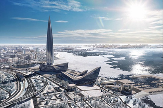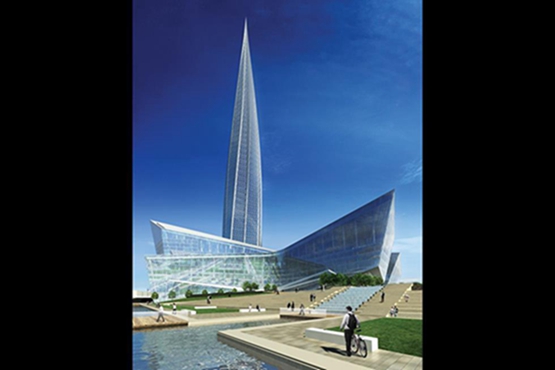 这座有五个面的高楼,从地面通过90度的螺旋形的旋转,到达462米的最高点,原本设计在圣彼得堡市中心,此举引起了联合国教科文组织的强烈抗议。