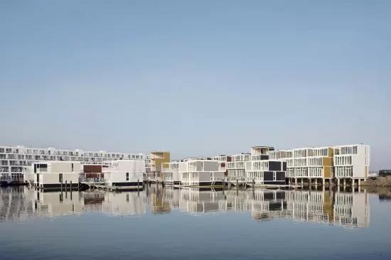 2011年时,阿姆斯特丹就已经有了第一个水上小区,它由200间漂浮在Ijburg河上的房屋构成,沿海长达7.5万米,混合了公寓、商店、办公和地下停车场。