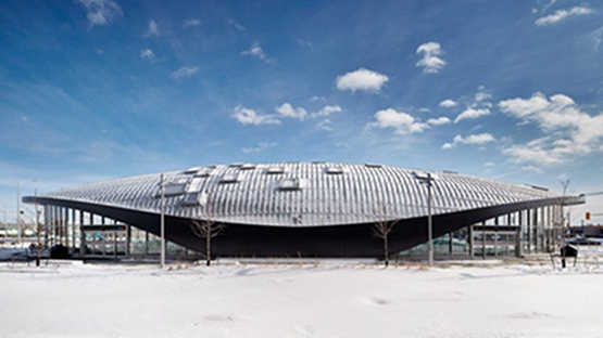 据报道,格雷姆肖建筑事务所(Grimshaw Architects)为扩大的多伦多地铁系统,完成了新车站——一个巨大的弧形屋顶,向下弯曲,形成墙壁,并且下面由镜子覆盖。