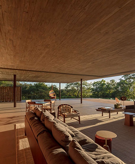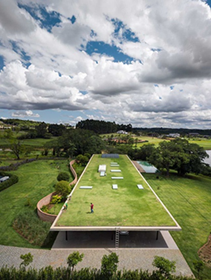 巴西MK27工作室(Studio MK27)在圣保罗郊外设计了一幢极简主义的住宅,在一个用青草覆盖的混凝土板屋顶下,为居民提供了各种封闭和开放的空间。
