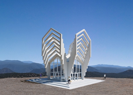 美国艺术家和设计师迈克尔-詹特森(Michael Jantzen)在新墨西哥州设想了一个“非教派”的教堂,其特征是一系列延伸到天空的“人字形”框架,以表示其对所有的人开放。