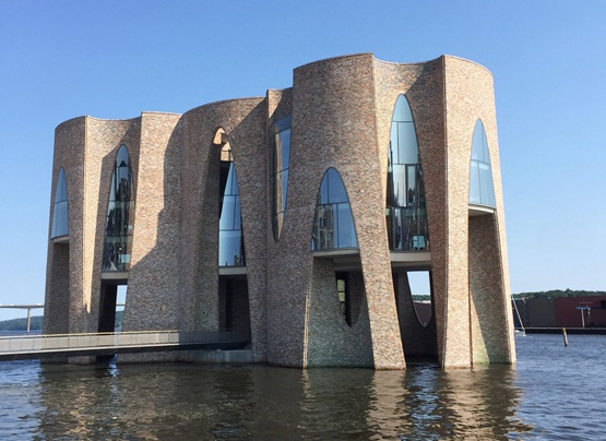 丹麦-冰岛艺术家奥拉福-埃利亚松(Olafur Eliasson)最近完成了他的第一幢建筑——位于丹麦瓦埃勒峡湾(Vejle Fjord)的一幢城堡状办公楼,名为 Fjordenhus。![]() FjordHunes是基尔克-卡皮塔公司(Kirk Kapital)的总部,它是乐高创始人的直系子孙三个兄弟的控股和投资公司。 但FjordHunes也有一个公众可访问的底层。 ![]() 这是第一个完全由奥拉福-埃利亚松工作室(Studio Olafur Eliasson)设计的建筑,它以前合作设计的建筑项目,包括位于雷克雅维克的“哈帕音乐厅”(Harpa)和伦敦的2007年蛇形画廊,并建造了较小的建筑,包括哥本哈根的CykelBrand大桥。 ![]() 这座建筑物从瓦埃勒市的海港升起。它通过一座人行桥进入,地下通道也连接着大楼的地下室和码头。 人行桥通向大楼的公共底层,它提供了在港口对面的景观,并装饰着由埃利亚松创作的特定的艺术品。 ![]() 在公共底层两倍高的空间之上,是基尔克-卡皮塔公司的三层办公楼。 Fjordenhus办公楼的独特形状,参考了瓦埃勒峡湾的环境。 ![]() 埃利亚松告诉记者:“客户说:我们想为我们的基金会建立一个工作环境,我们想强调对我们来说重要的品质:自然、光线、天气、季节和瓦埃勒峡湾,” 这座建筑物的几何形状是由四个相交的圆柱体组成的。这些圆柱体中的每一个都有从它们中间雕刻出来的空隙,它们在一端是圆形的,另一端是椭圆形的。 建筑部分装玻璃,拱形开口也从这些柱体切出。 建筑围绕混凝土结构,建筑的内外墙是由970000块砖建成的。 ![]() 艺术家选择了15种不同色调的无釉砖,以及蓝色、绿色和银色釉面砖。 每一个外立面都有不同的砖组合,这取决于它将接收到的光线,釉面的蓝色砖块在基座和蓝色砖块更频繁地使用在建筑物的顶部。 内部空间也由特定的房间用途的砖块组合。例如,楼梯间只使用灰色和银色砖。 |