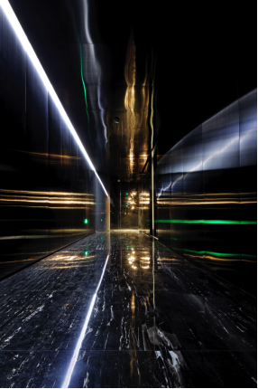 BNJN本真设计公司的门口未设立前台,当大门开启时,是一条黑色钨钢和大理石包裹的走道。这与许多当代艺术家在展览中创造的纯黑空间、纯黑走道……有着不谋而合的相同造诣,