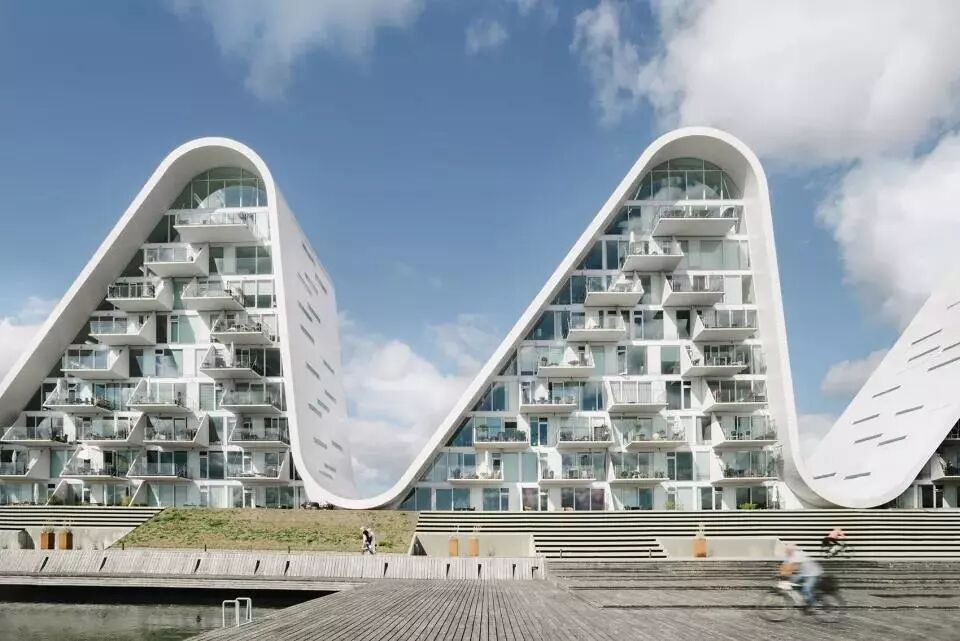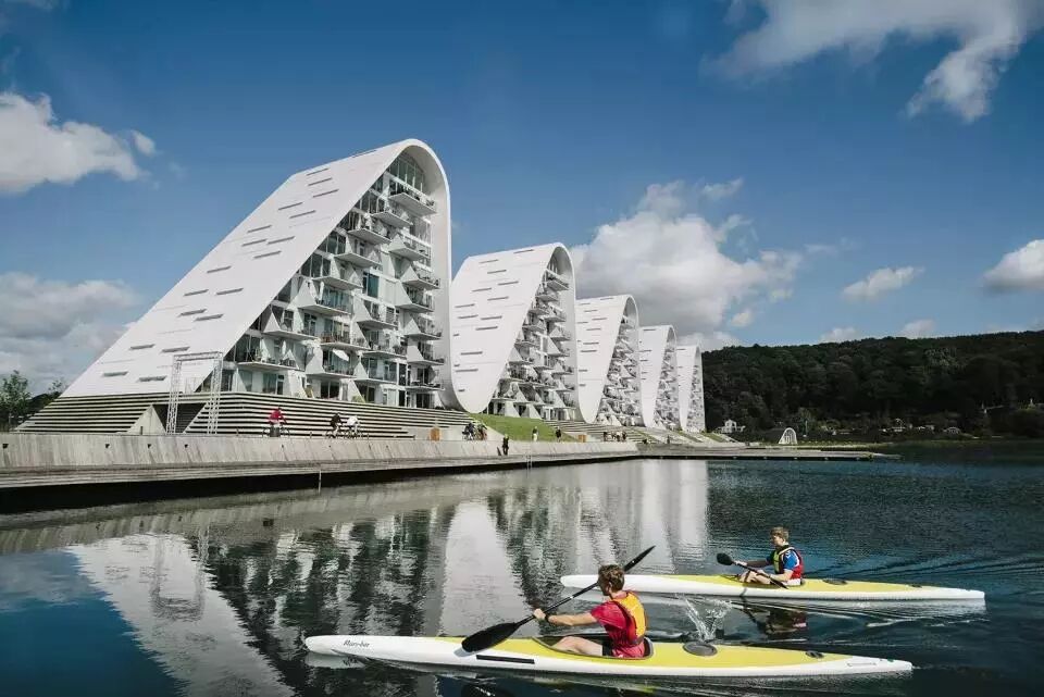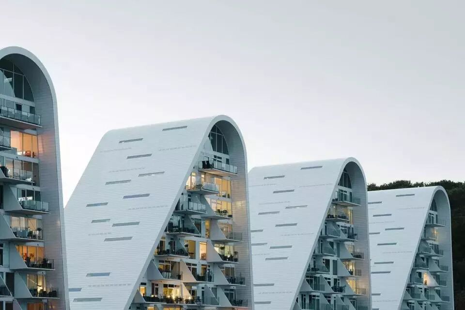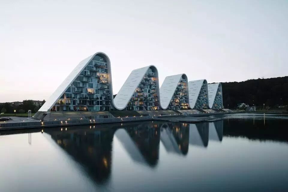 近日由丹麦 Henning larsen 事务所操刀设计位于丹麦瓦埃勒峡湾边上的 The Wave 住宅,近日竣工完成!