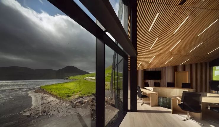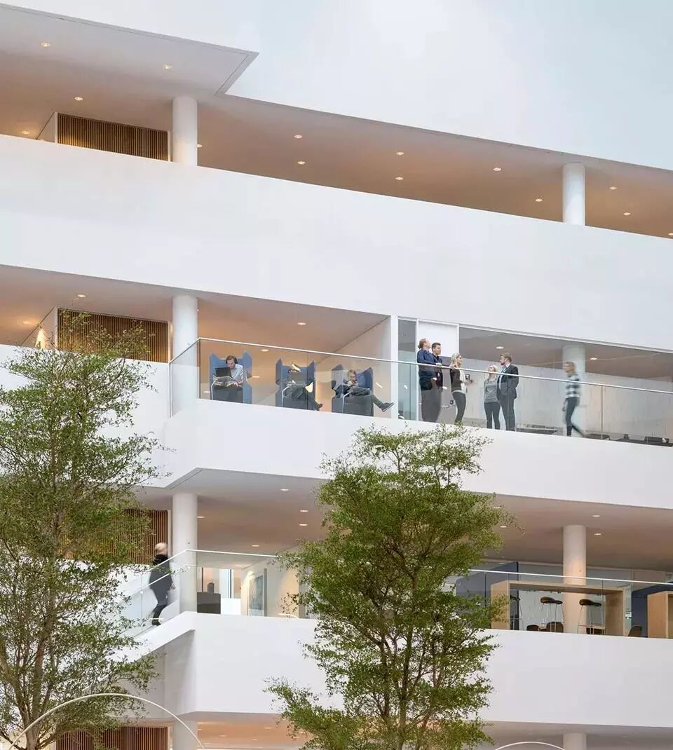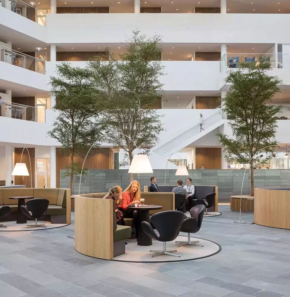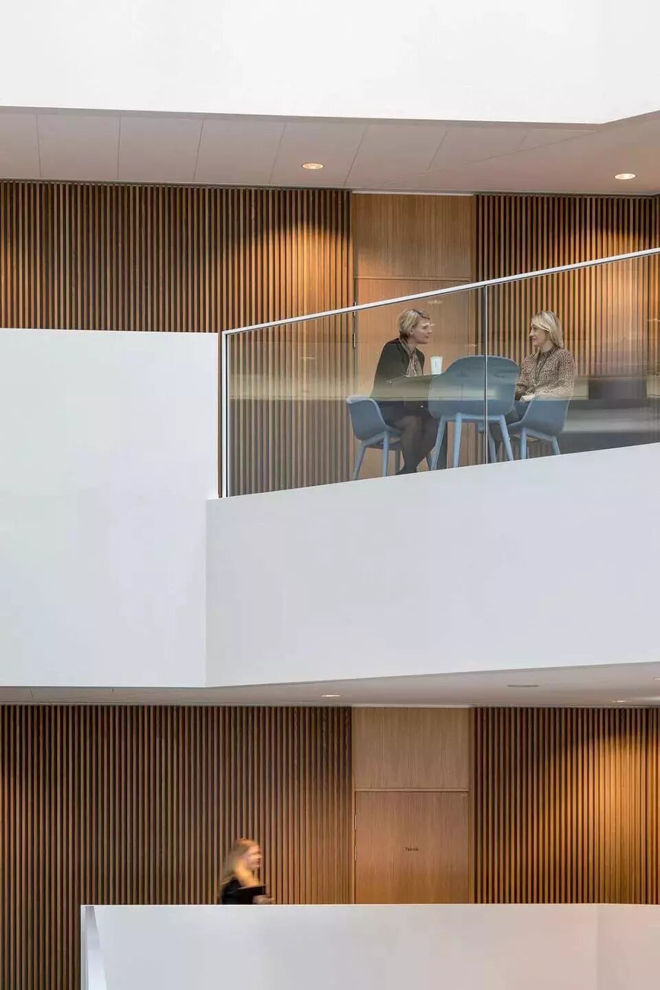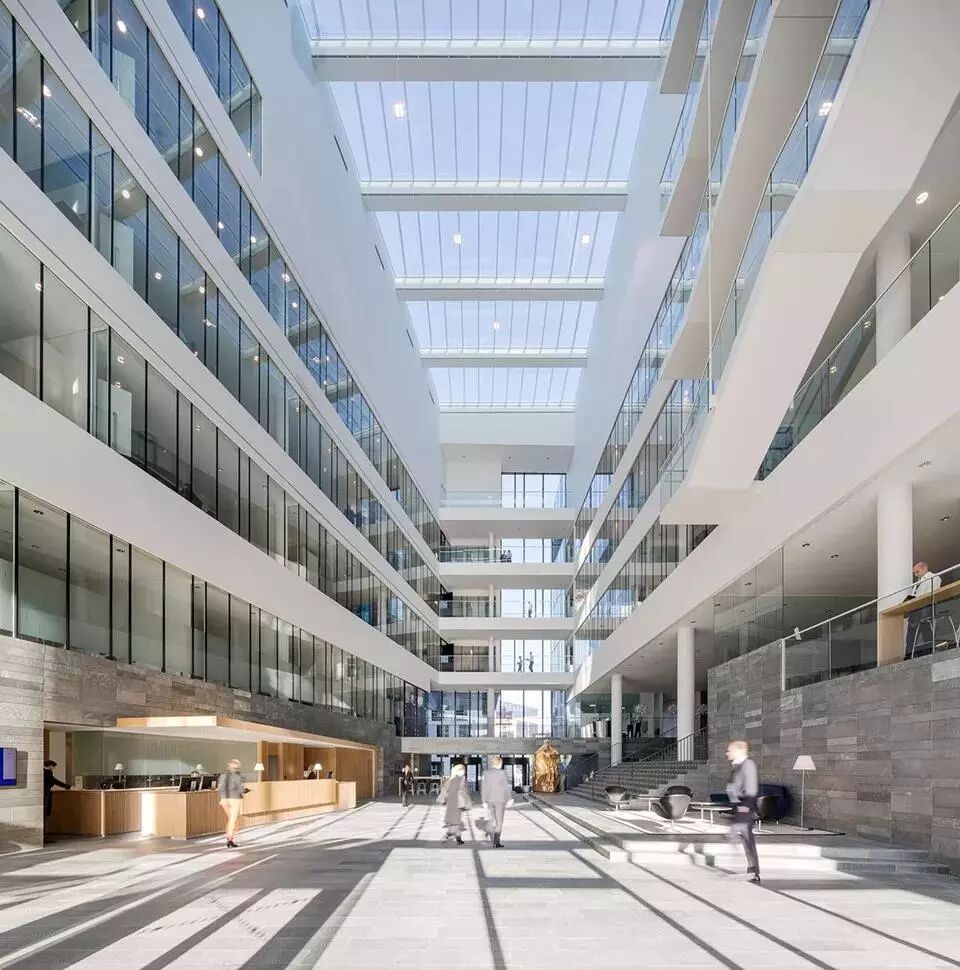入口处室内的温度和自然采光,对人员的健康、工作效率和工作满意度起着至关重要的作用,Henning larsen 事务所深知这一点,一切设计都为了员工可以全天候在不同的工作环境之间切换。