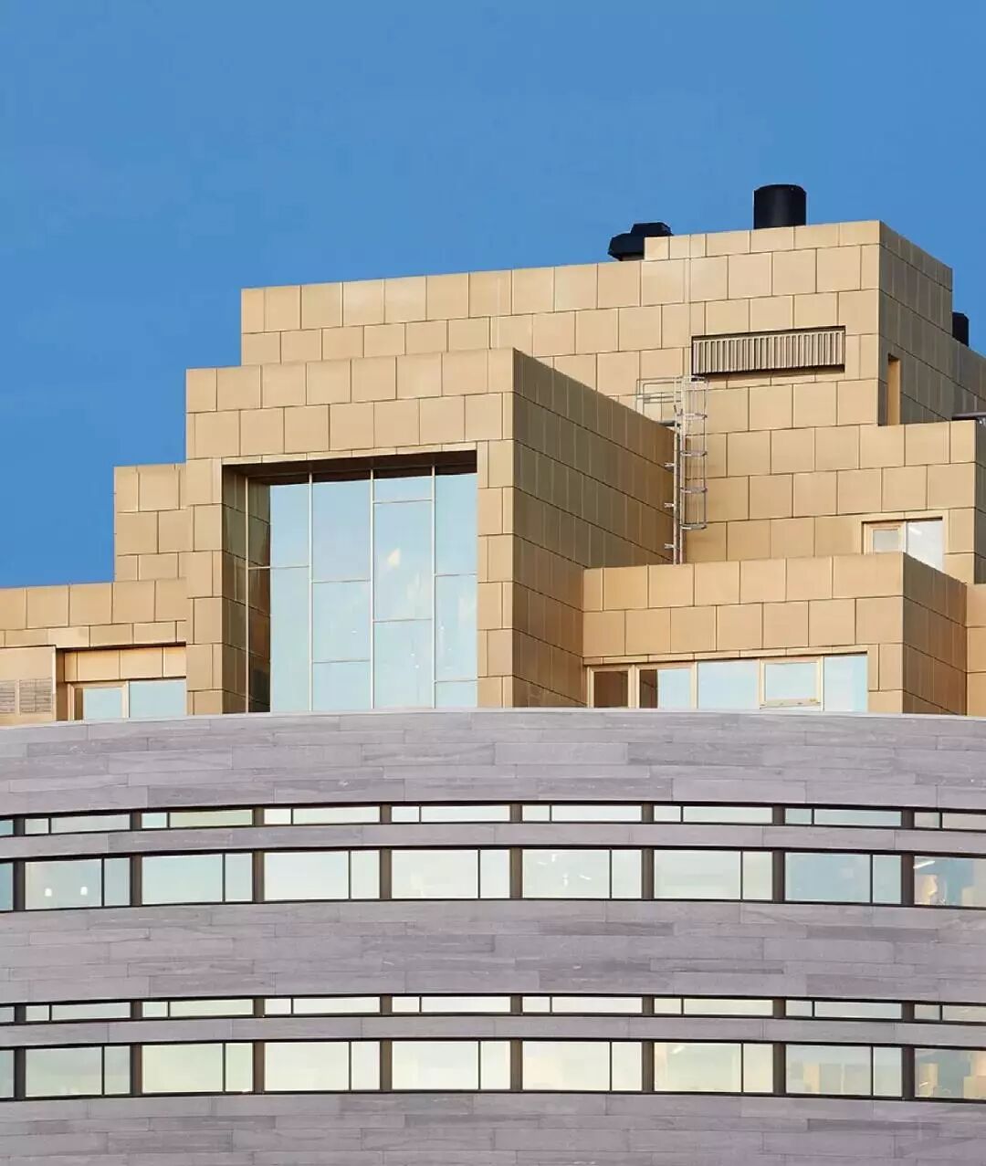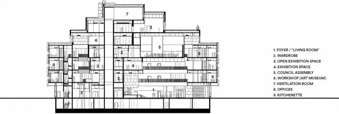 并且室内走廊连接了方形的内核和圆形的外部体量。