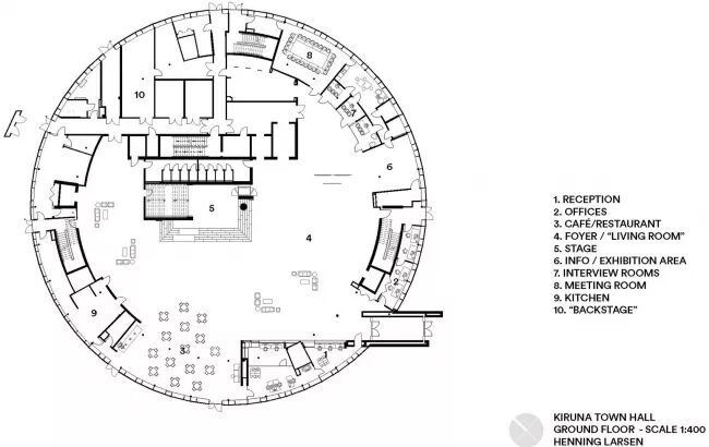 随着基律纳老城的迁移Henning larsen 事务所在市政厅设计上,旨在解决新城与旧城之间的连接,市政厅更被赋予了深刻的意义。