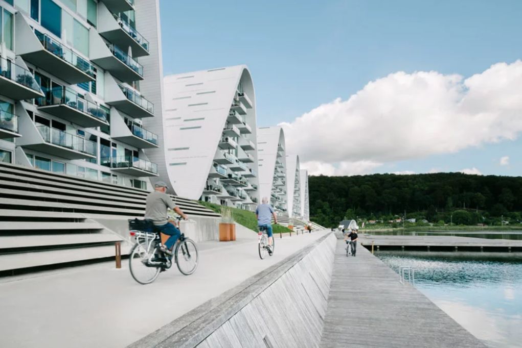 建筑物周边的环境可以直接影响着用户的居住质量,而在 Henning larsen 事务所设计下的滨水生活区,充分展现了人与建筑之间惬意的相处模式。