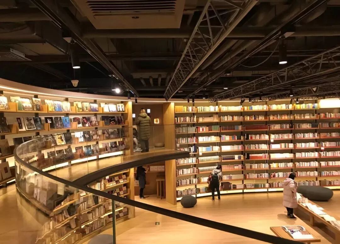 进入一层区域,只见上下双层的原木色书架一字排开,各类书籍层层叠叠、非常壮观,让人不禁联想起所谓“天堂图书馆”的模样。