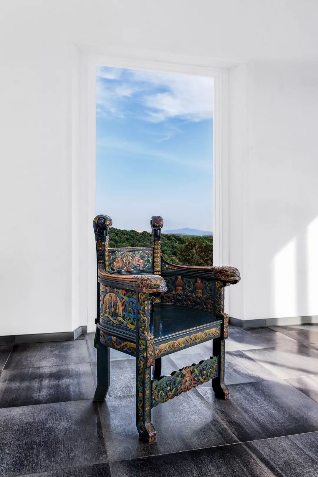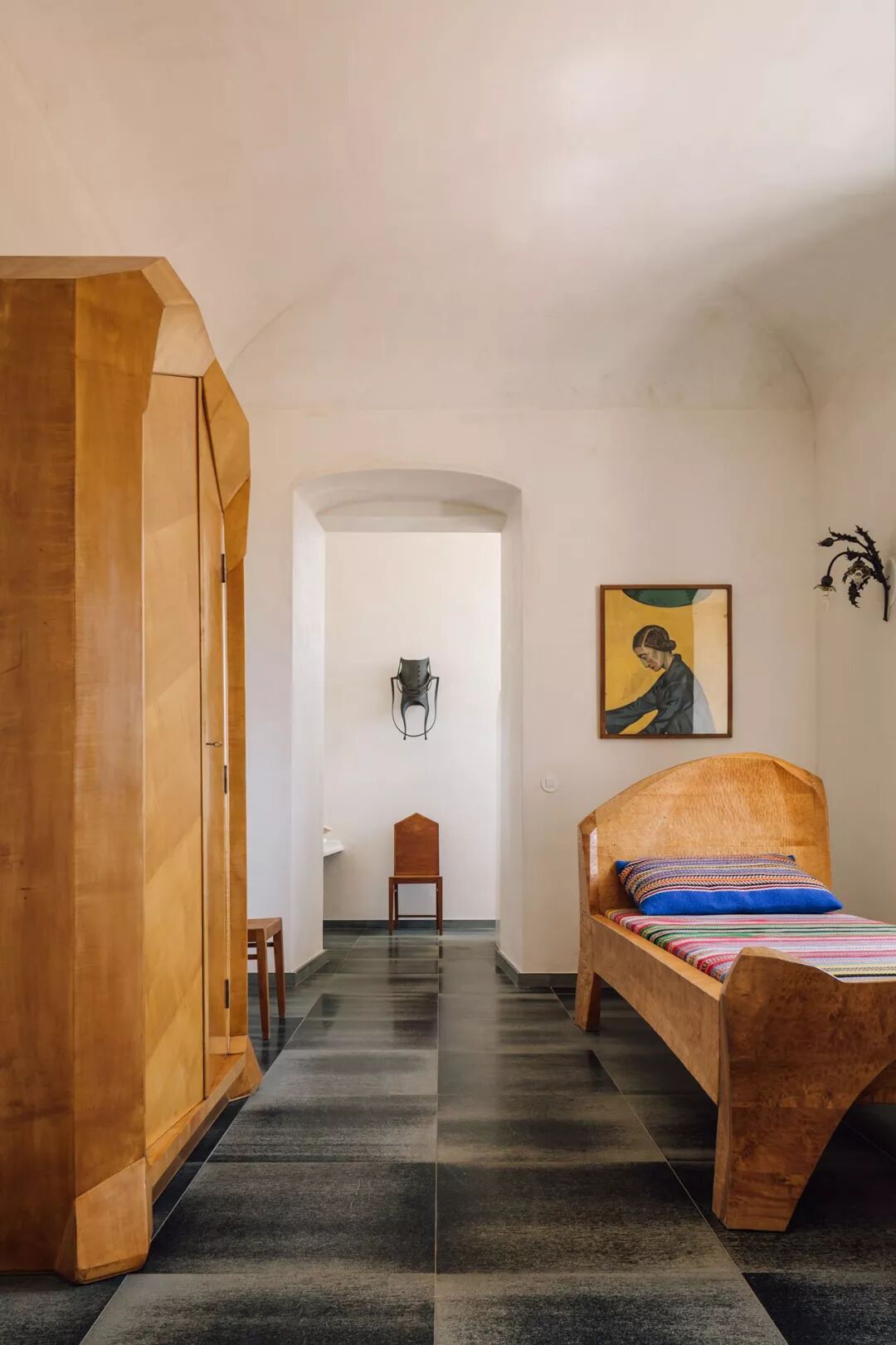 从博尔赫斯设计的大理石边桌和灯具,到艺术家Mizzete Nielsen的彩色毯子,Susana Piteira的陶瓷和19世纪挪威木雕家和设计师Lars Kinsarvik的古董木制橱柜,大部分家具风格都来自Jugendstil,更加图形和几何斯堪的纳维亚版的法国新艺术运动,以及鲁道夫施泰纳的人类学设计。