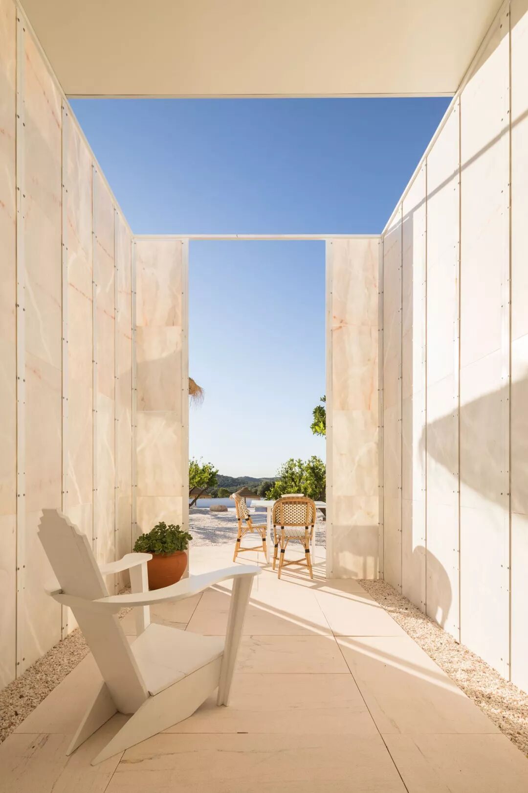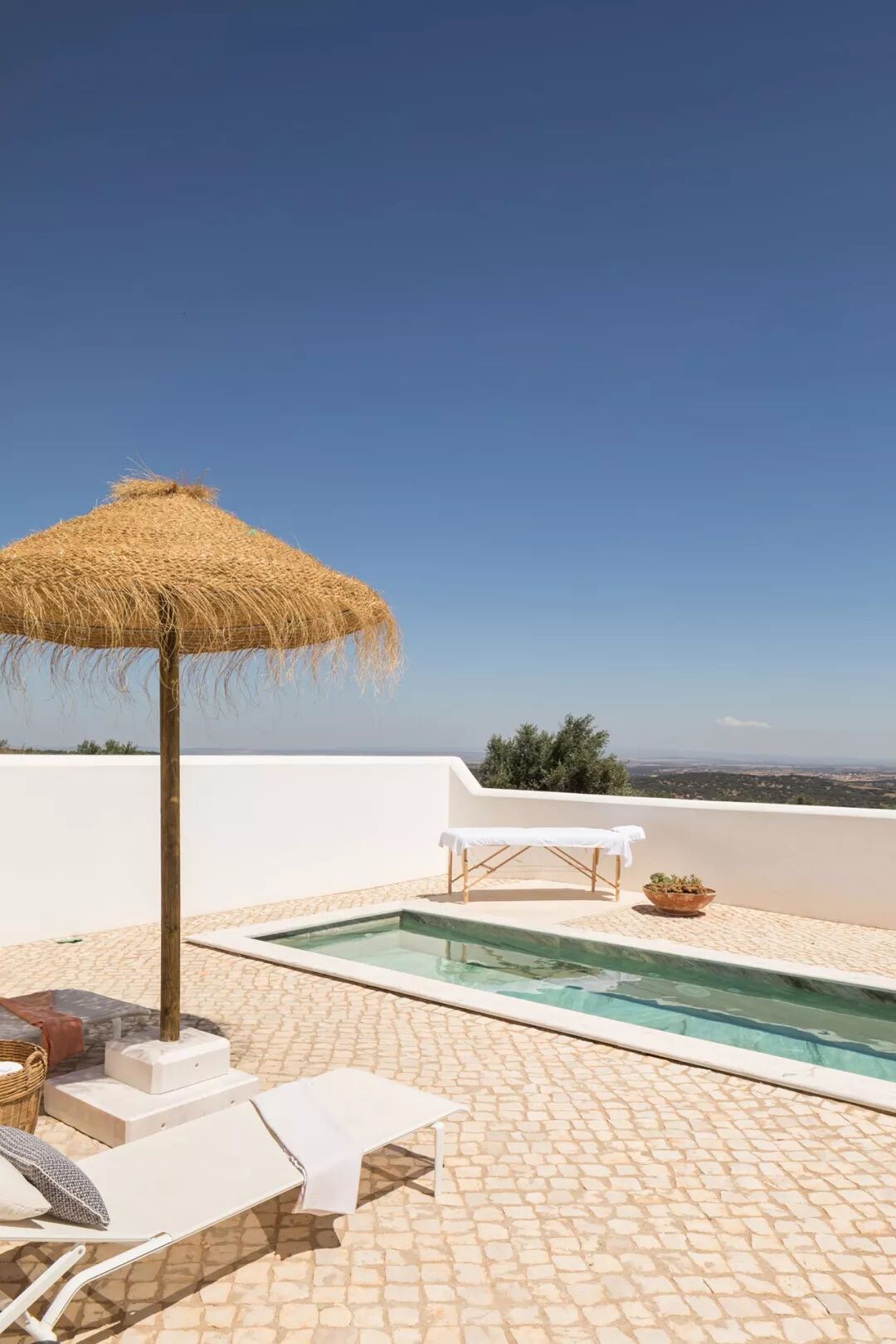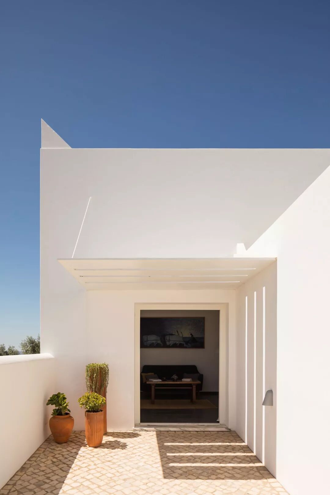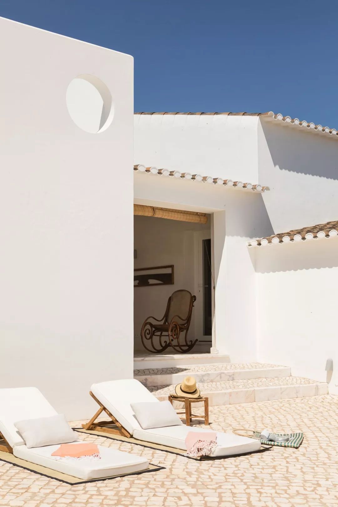 酒店最初的目的是远离城市的喧嚣,享受宁静的私人住所,打造度假胜地。由几何形状打造,通过和谐融合当代设计与民俗工艺,与令人惊叹的艺术收藏品,全白色外观的朴素敏感性体现在酒店内部的简约美学中,Vitor Borges和Franck Laigneau自己也做到了这一点。