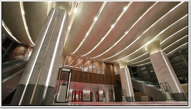 除了建设方面的高标准、严要求外,设计细节也独具匠心。因为这不仅仅是一个会场,更是一个中国向世界展示风采的窗口。在装饰过程中,必须把‘匠心’运用在每一个角落。厦门国际会议中心的东西两侧各有一条迎宾长廊,是整个会场的“门面”,也是各国领导人步入会场的地方。