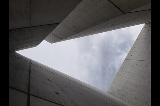 在三角空间的墙上嵌入了大量的死亡集中营、杀戮场和其他与大屠杀有关的地点的黑白照片。它们设计成根据光照条件和参观者的运动而改变。