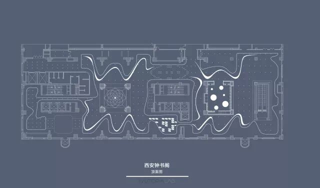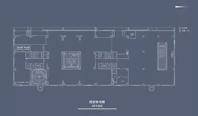 公共阅读区的中央是神庙,层层拱券的中心,在楼板结构梁的中央矗立着一座精致的展架,这就是钟书阁的“每月一书”,也只能供一个人翻阅和思考。读者的脚下的楼板被换成玻璃地板。这仿佛水面的楼板下隐藏的是空间可以提供读书会或者会议,这个看不见的学院和看得见的神庙一起构成了西安钟书阁的中心,一个思想和灵魂得以焕发光辉的圣殿。