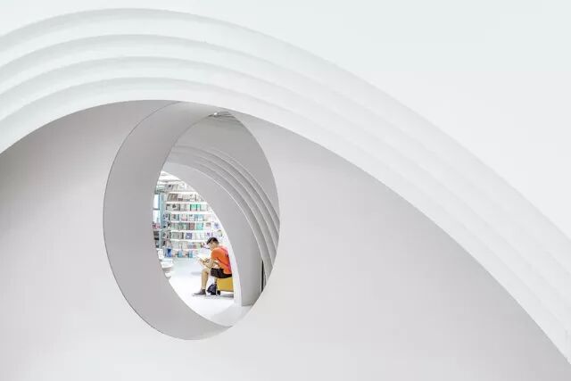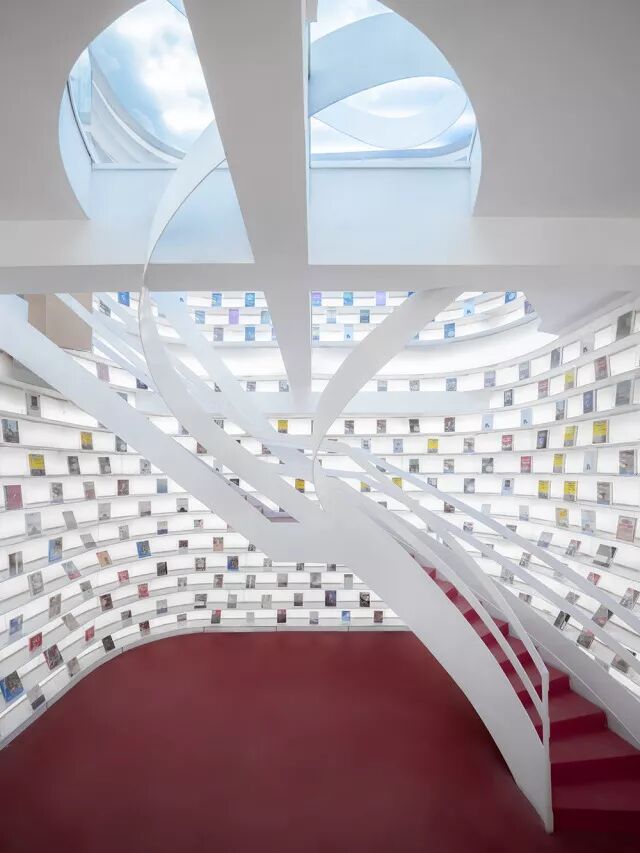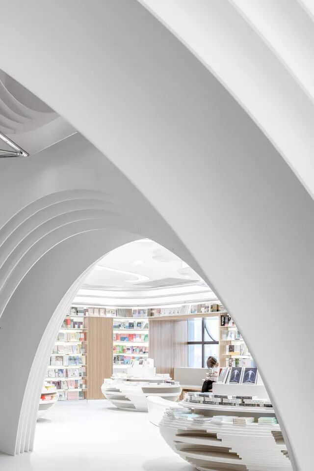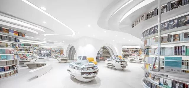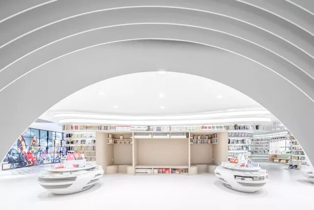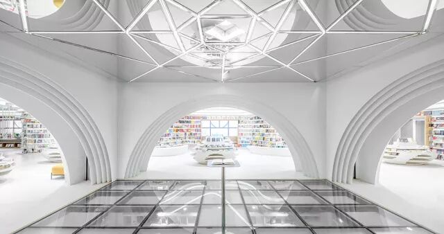 地主俞挺用300吨钢和3万米灯带打造了最白的书店,西安的白色神曲