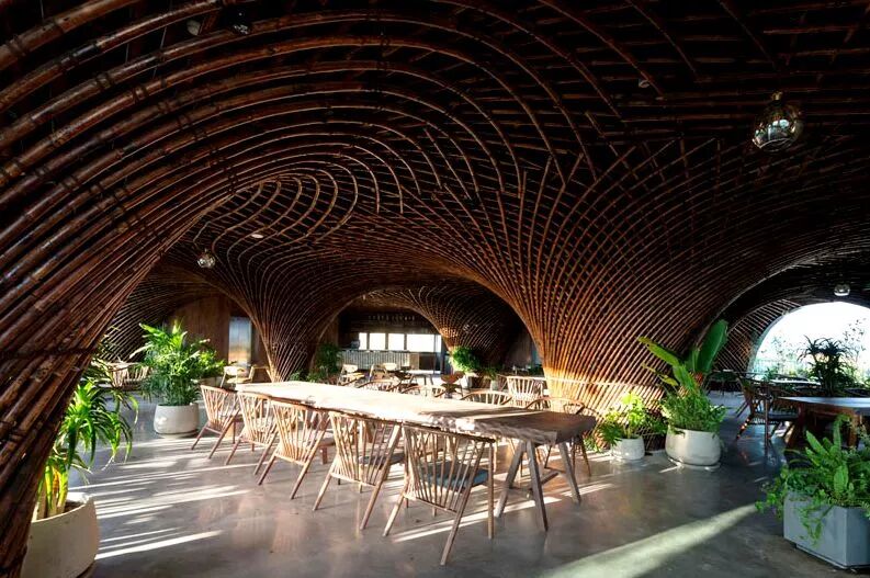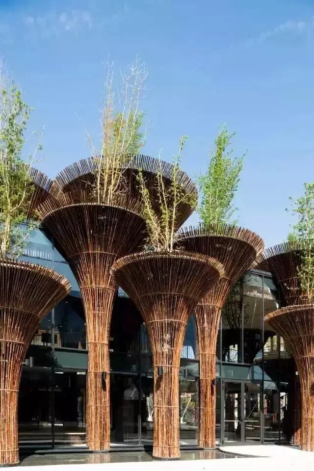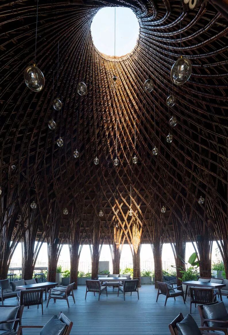 有人说,竹子是植物界里的钢材。中国古语也说到:宁可食无肉,不可居无竹。无肉令人瘦,无竹令人俗。作为建筑中的建造原料,竹子的使用,除了用以营造意境氛围,除了低成本、绿色低碳的等优点外,在设计上,也有着千变万化。